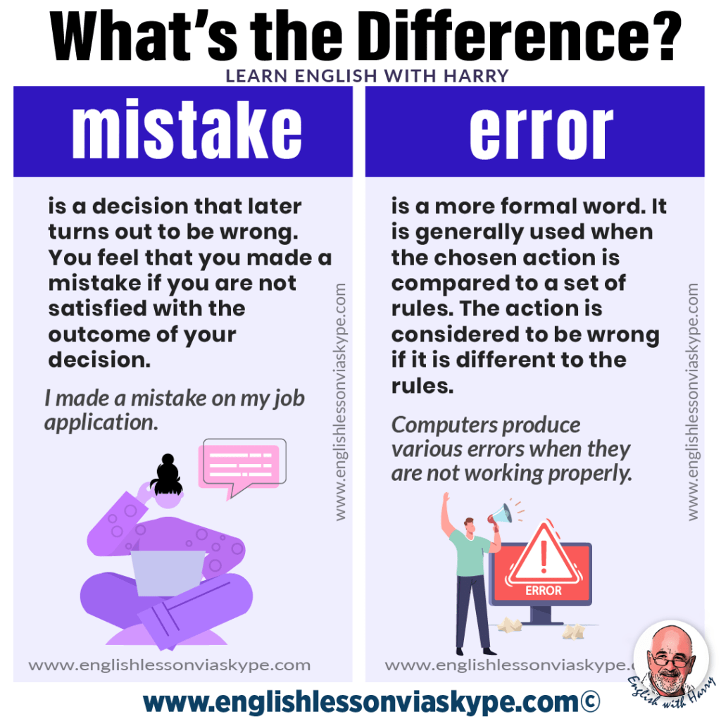 Pour clarifier tout cela, en français on peut distinguer les notions d’erreur (aka mistake) et de faute (aka error).
